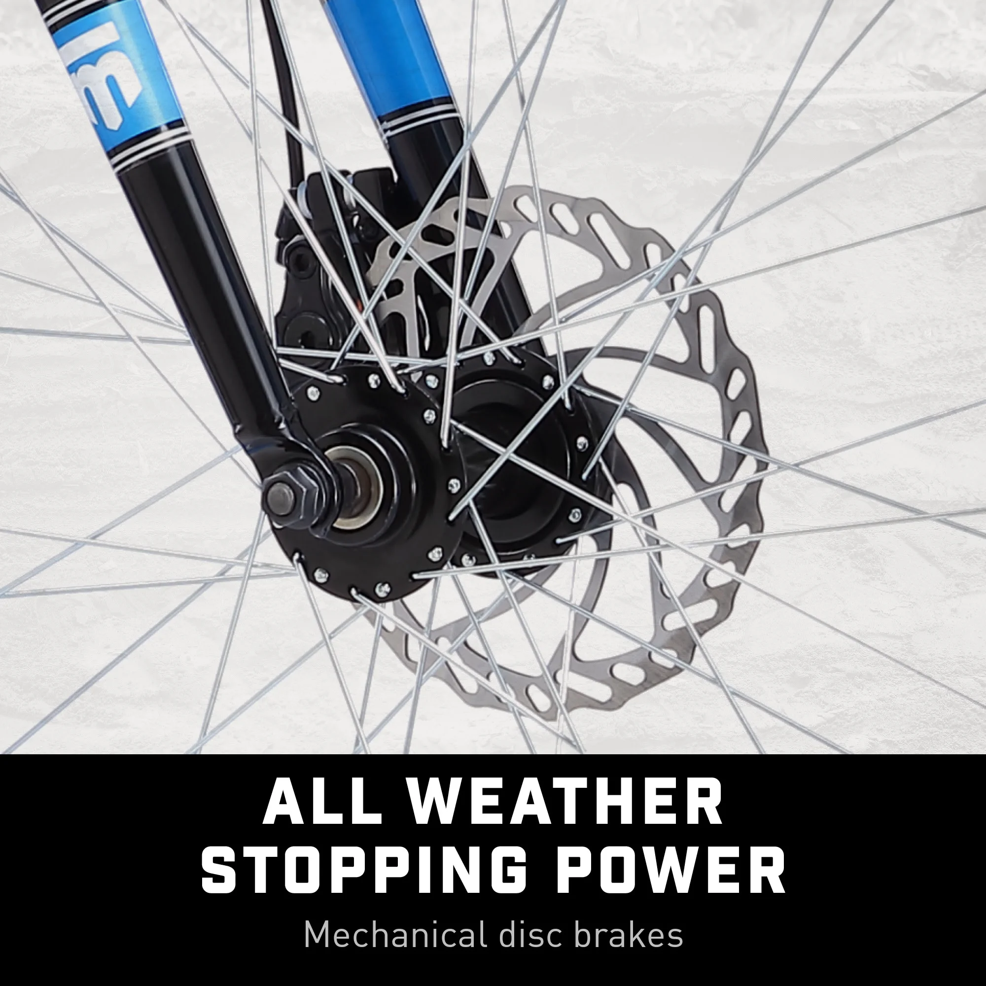 - Dual disc brakes provide all-condition braking