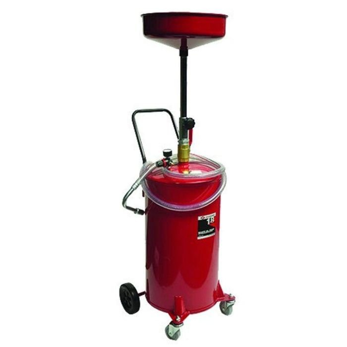 American Forge & Foundry 8893 18 Gallon Waste Oil Receiver features an 18 gallon steel recovery tank with 6′ wire reinforced drain hose. The 8893 features a tank-mounted oil level sight glass, deep drain funnel, extendable drain tube, preset pressure regulator, and heavy-duty wheels and casters.