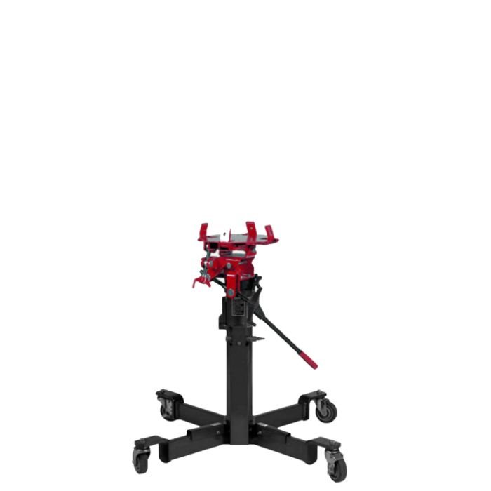 Buy NowThe Challenger Lift high-rise automotive transmission jack features the most flexible, usable and safe head-plate design to boost productivity. This 1,200 lbs. capacity transmission jack features a two-stage design: the first stage is 100% air-operated for speed, while the second is hydraulic for precise control. The swivel casters make for easy maneuverability, and a nylon “speed strap” is included to secure the load quickly and conveniently. The heavy-duty, acme threaded screws provide a more excellent bearing surface for easier tilt adjustments. The four quick-ratcheting brackets make the head-plate flexible and easy to use.
