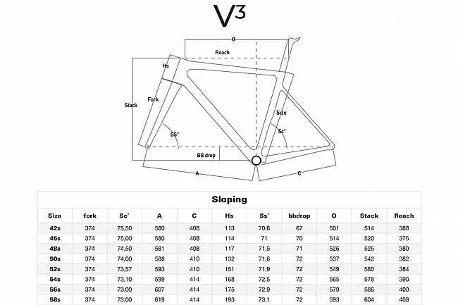 Quality carbon and fittings designed to offer an excellent level of performance make the V3 a perfectly balanced bike in every respect. The design combines technical features with light and aerodynamic details.