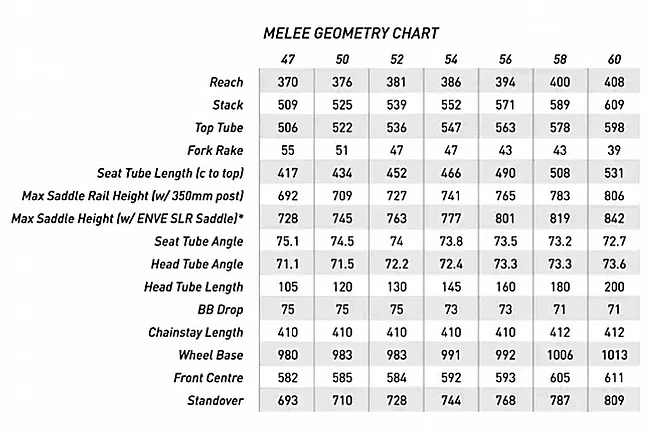 ENVE have added two extra fork rakes to specifically accommodate the smallest and largest of riders. This ensures that the Melee, regardless of size, will deliver the same level of responsive, confidence-inspiring handling required of a race bike.