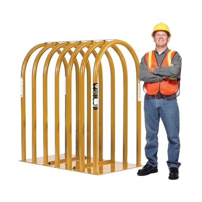 The ESCO 90415 7 Bar Tire Inflation Cage for OTR is used when changing and inflating tires on large earthmovers, agricultural, and many other heavy duty vehicles. This safety cage is constructed from heavy-gauge steel tubing welded to a steel base and helps protect against tire explosions during inflation and deflation. The 90415 is designed to meet OSHA regulation requirements and fits up to 29.5R25 L-3 Earthmover tires. A tire inflation safety cage is a must for any shop working with tubeless and multi-piece rims.