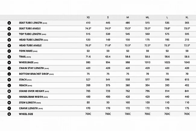 - Handlebar: Giant Contact SLR D-Fuse XS:40cm, S:40cm, M:42cm, M/L:42cm, L:44cm, XL:44cm