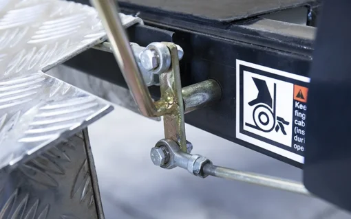 • Hardened steel safety lock linkages use 3/8” molded carbon steel rod ends to reduce flex and twist to ensure positive locking and smooth operation.
