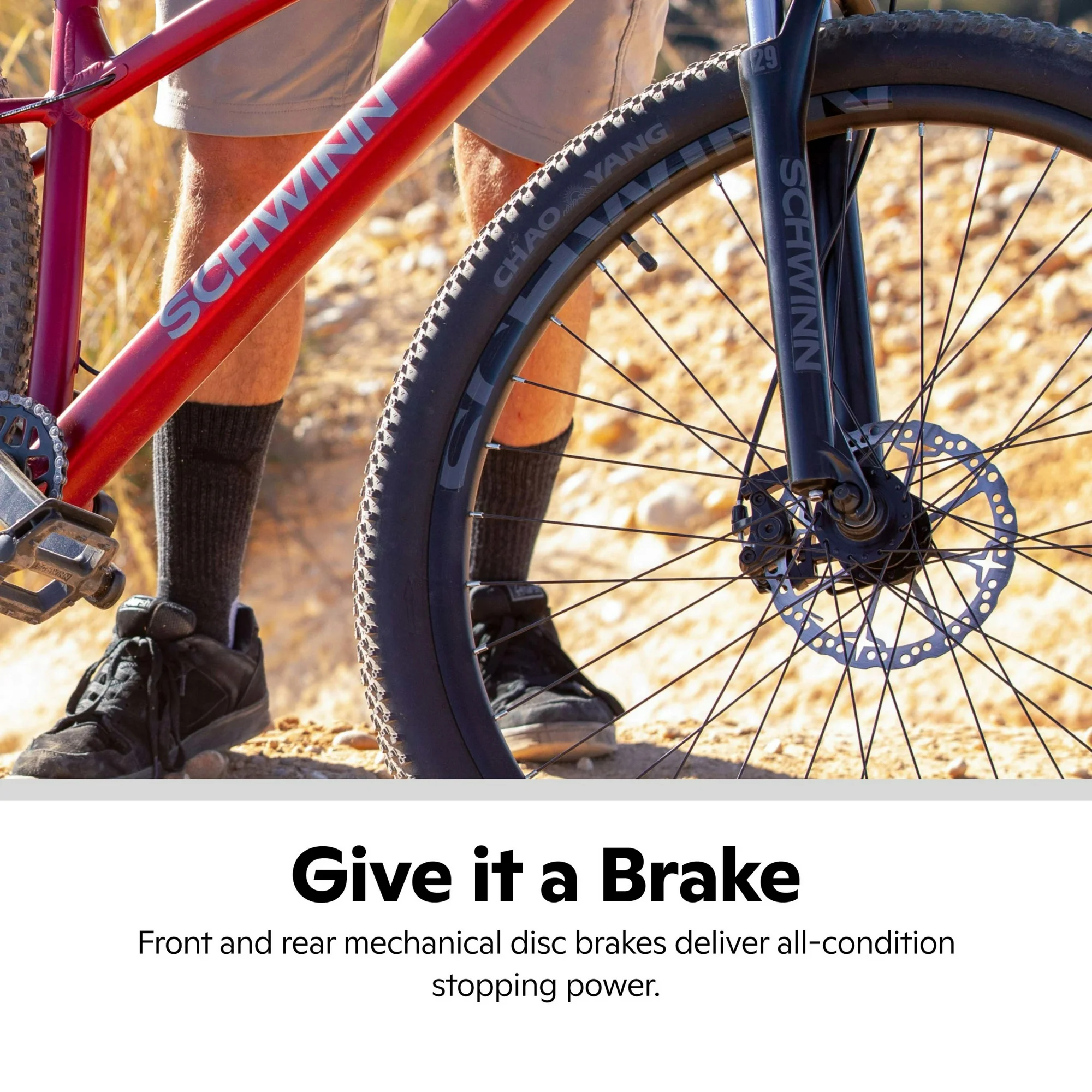 - Adult mountain bike featuring a lightweight Schwinn aluminum frame and upgraded components for superior trail performance. 29-inch wheels fit riders between 5′ 4″ and 5′ 8″ tall. Unisex.