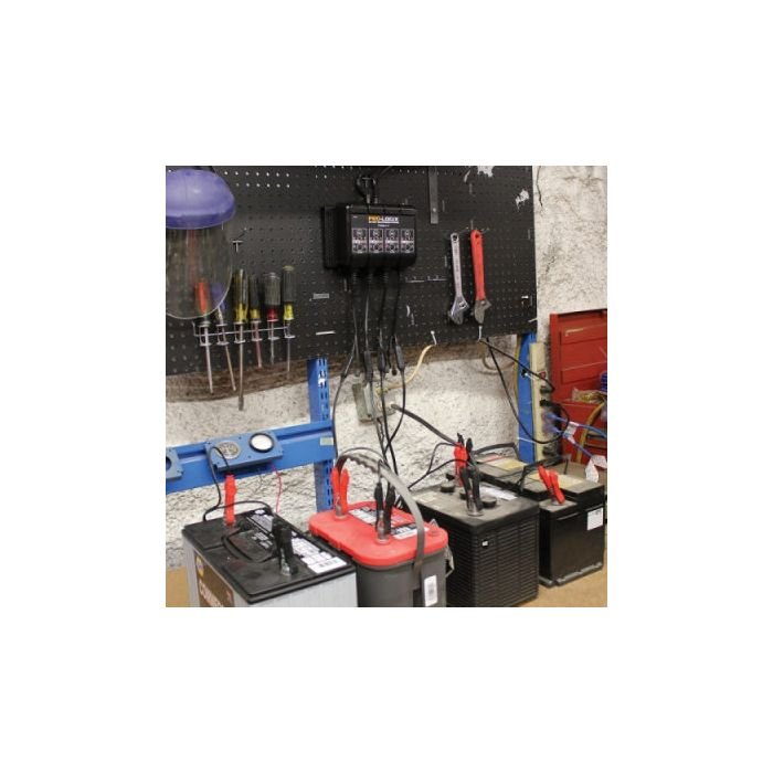 Model PL4020 is a perfect charger to meet the needs of mechanical repair shops, collision repair facilities, fleet operations, marinas and consumers. It features four independent output channels designed to properly charge a flooded or AGM (including Sprial Wound) battery. Because each output is independent of the others, a troublesome battery on one channel does not create problems for the other channels. It combines fully automatic operation with the ability to properly charge multiple battery types. Advanced charging logic, robust components, quick set-up and smart display feedback mean effective and efficient charging for your operation.
