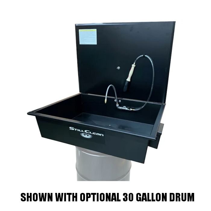 StillClean SC-30W is an industrial drum mounted solvent parts washer. Built-to-last for years of reliable service. Equipped with flow-through brush and “stay-put” flexible spigot that directs and holds power rinse where you want it. For use with petroleum based solvents with a flash point over 104°F. Not to be used with chlorinated solvents.
