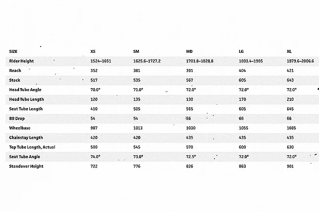 - 650b wheelsets recommended for XS and S while M–XL are optimized for 700c