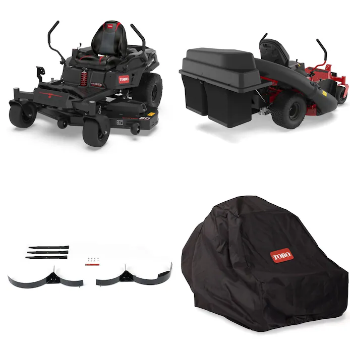 Get ready to wreak some HAVOC. The 60 in. Toro TimeCutter Havoc Edition annihilates it all. Built with over a century of pro-level engineering that’s been perfected for you and an unflinching heavy duty steel deck, it’s one mean mix of performance, precision and absolute toughness. Keep your mower protected with the tear-resistant 600-denier polyester cover. Optimize your lawn care routine with the Toro TimeCutter MAX twin Bagger, that will complete the job with durable grass catchers’ 8 cu ft capacity. Assemble it easily, remove and reattach without tools, and experience unmatched performance when paired with Toro’s top discharge decks. Pair it with the mulching kit that comes with mulch blades, mulch baffles, hardware and instructions.