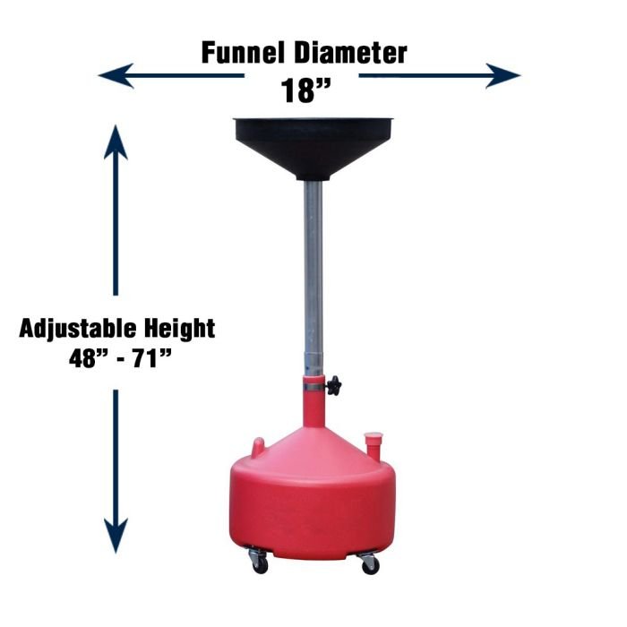 The Tuxedo 8G is a Premium Upright Portable Oil Drains with 8 Gallon Fluid Capacity and Manual ‘Pour’ Extraction. Features include large funnel, contamination screen, adjustable height, (4) 3-1/2″ wheels, and integrated hand grips.