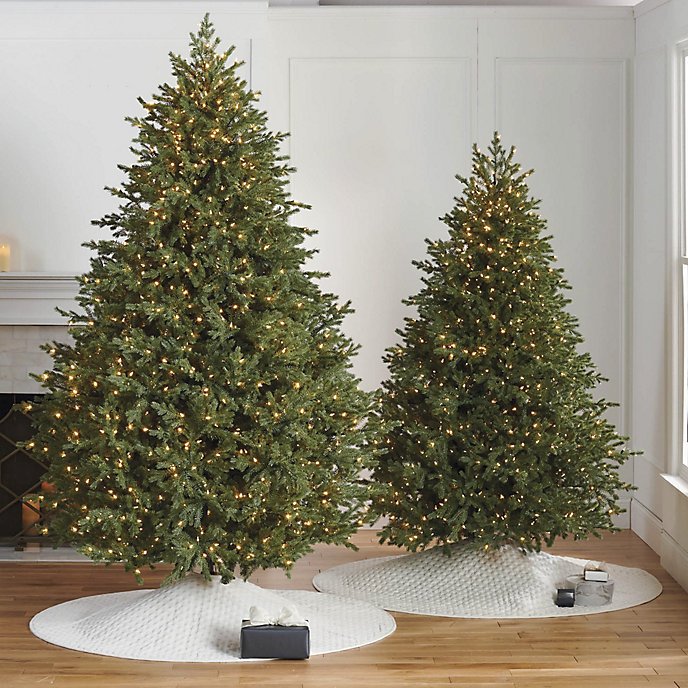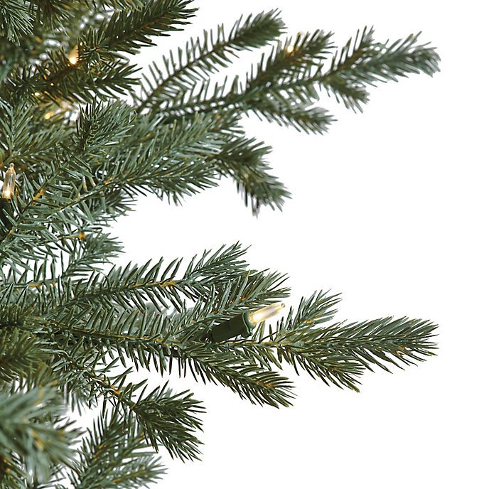 This lifelike full-profile tree recreates the look of a classic fir filled with pre-lit branches, masterfully created from molds of natural cuttings and carefully arranged for maximum density. The full branches and hinged construction ensure continued durability over the years. Long-lasting warm white LED lights mimic an incandescent glow and are secured in place along with larger globe-style lights. Easy one-cord assembly in less than 3 minutes.